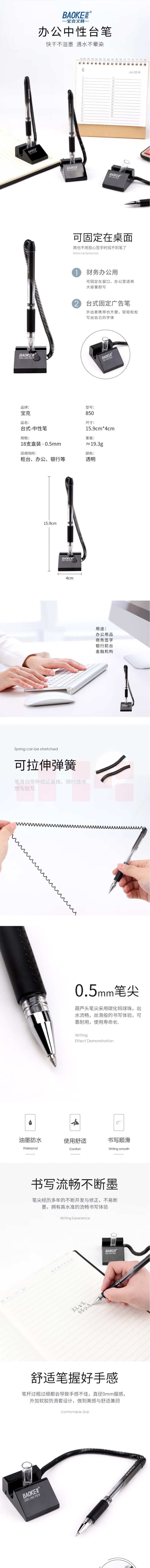 NO850台笔 办公银行柜台笔固定中性笔防漏墨签字笔头0.5mm 黑色