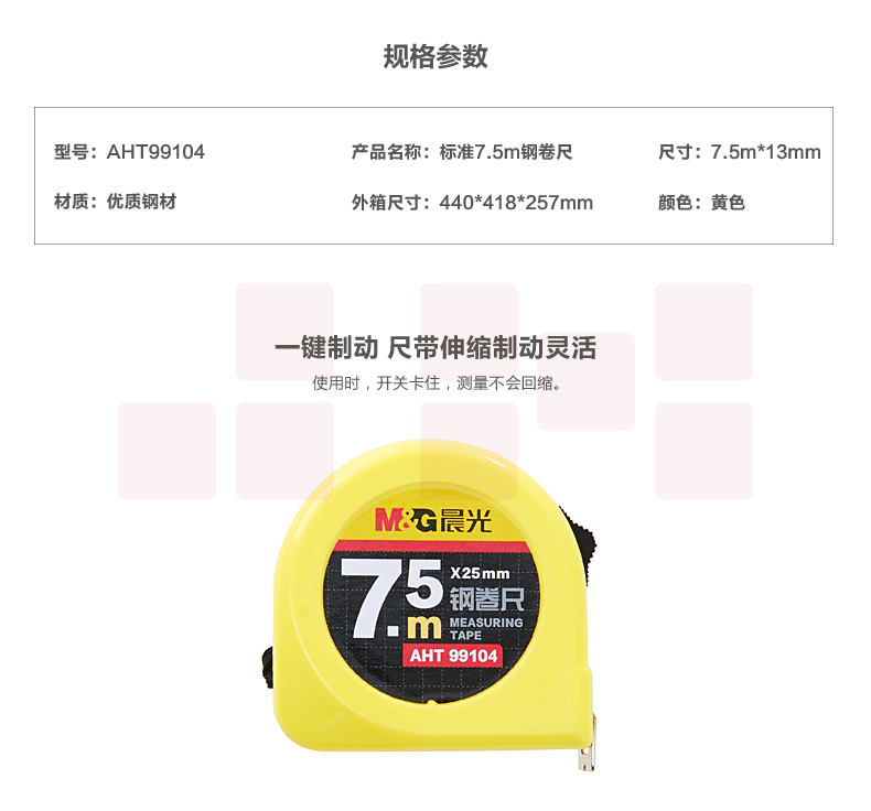 晨光(M&G)7.5米标准钢卷尺 外壳尺测量工具卷尺AHT99104 一包10个装