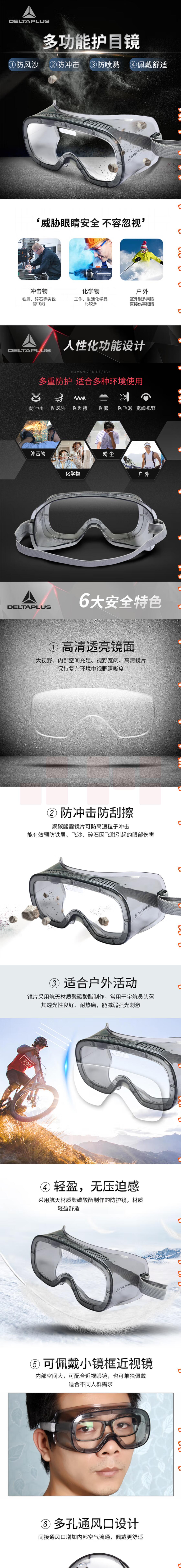 代尔塔 101125 安全护目镜可佩戴近视镜