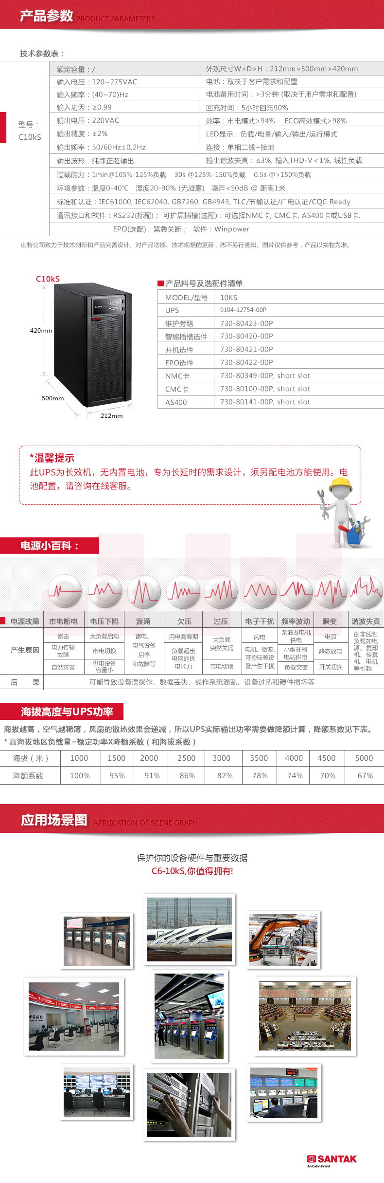 山特(SANTAK) C10KS主机UPS不间断电源在线式稳压10KVA/9KW