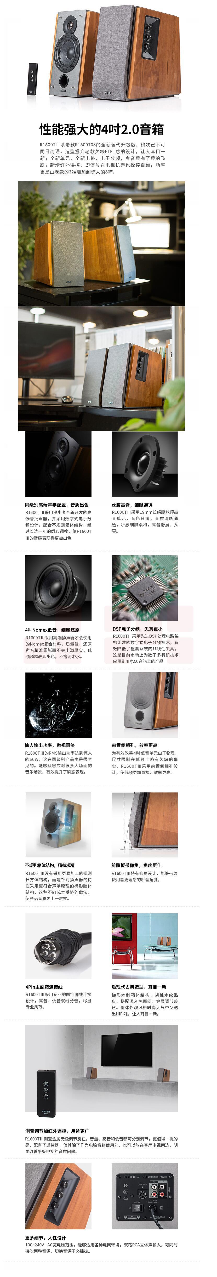 漫步者(EDIFIER) R1600TIII 性能强大的4英寸2.0音箱 电脑音箱