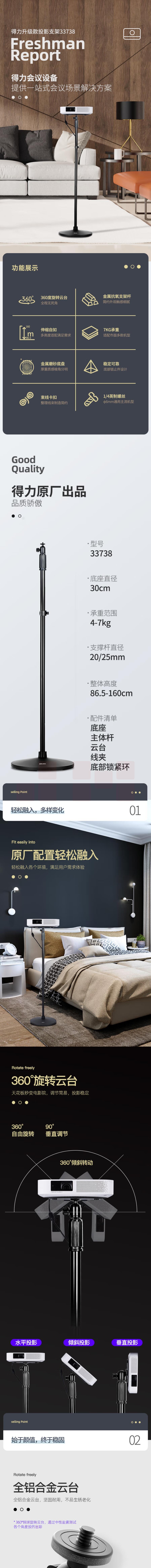 得力(deli) 投影机落地支架 360°旋转云台支架33738