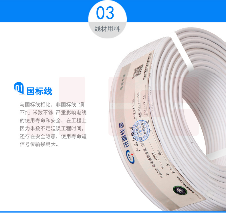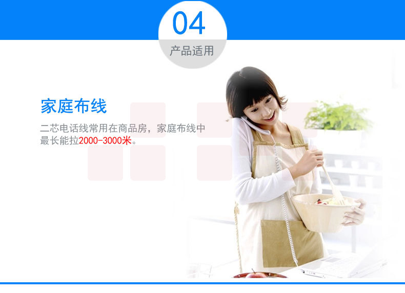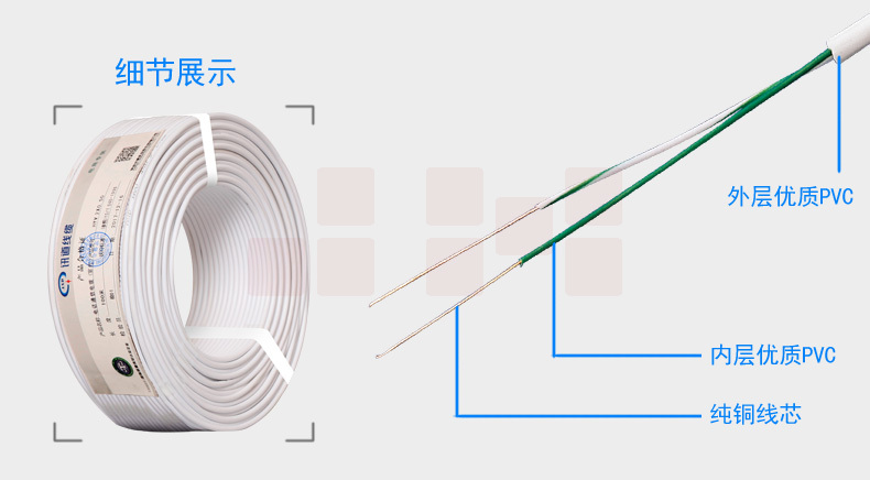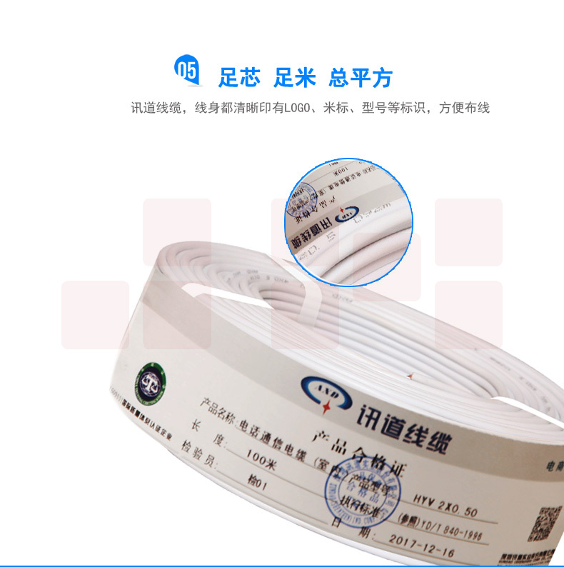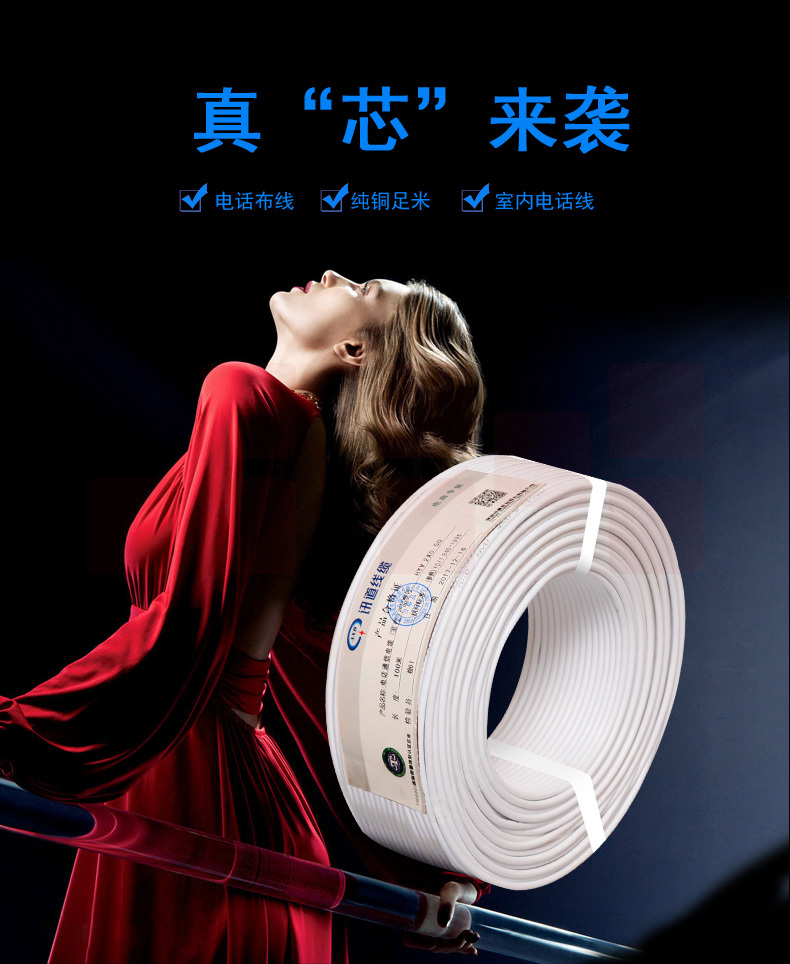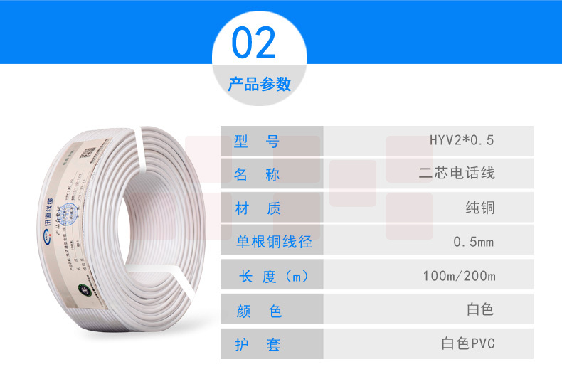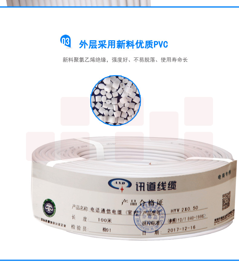 讯道 室内电话线HYV 两芯电话线,0.4平方 100米/盘