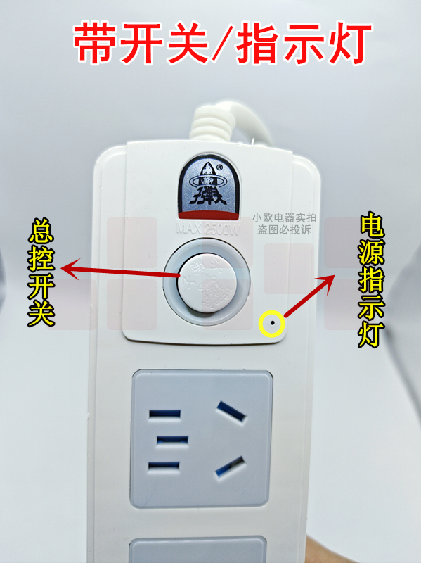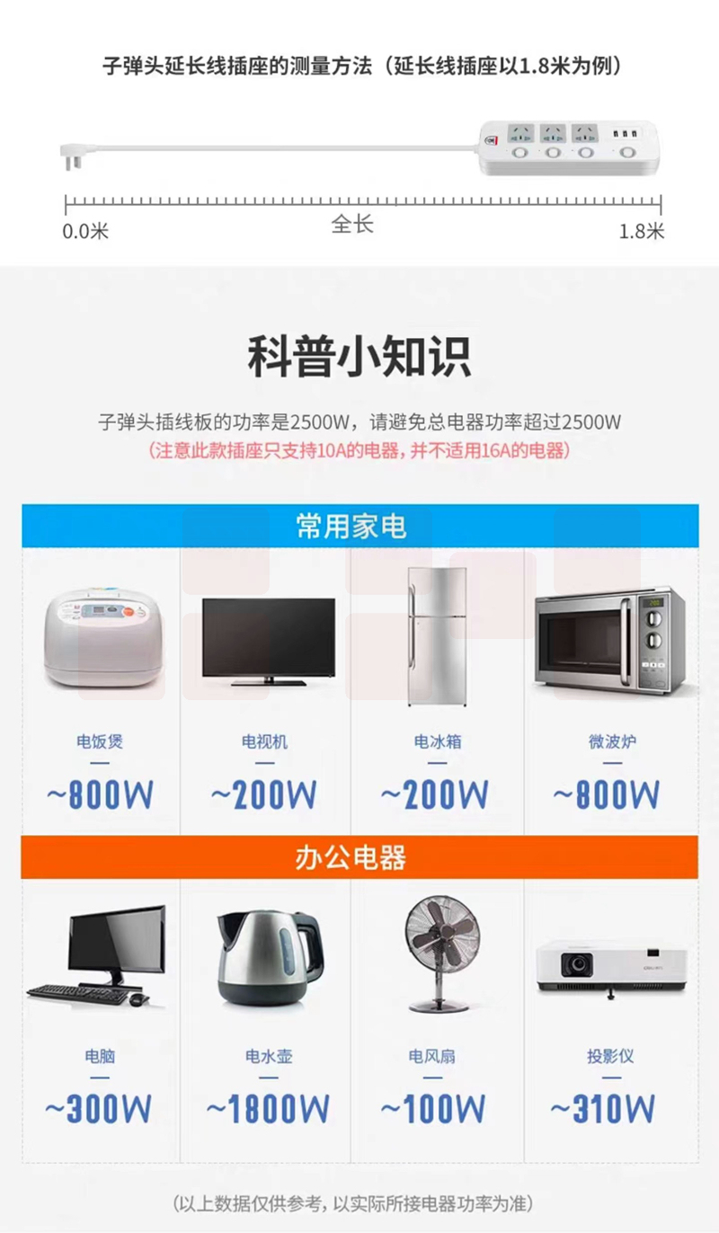 子弹头带线插座板插排插线板家用5米3米10米多孔大功率分控接线板2.8米