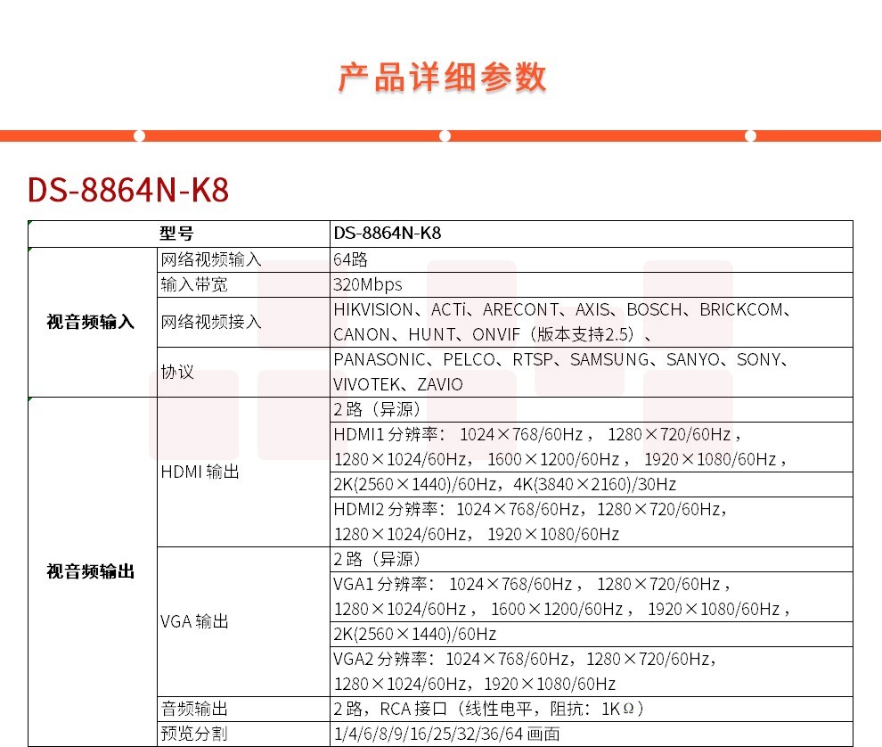 海康威视 DS-8864N-K8系列监控硬盘录像机64路NVR网络主机8盘位支持4K高清多路回放