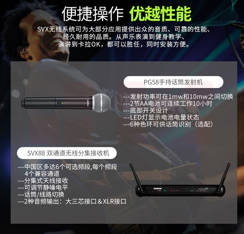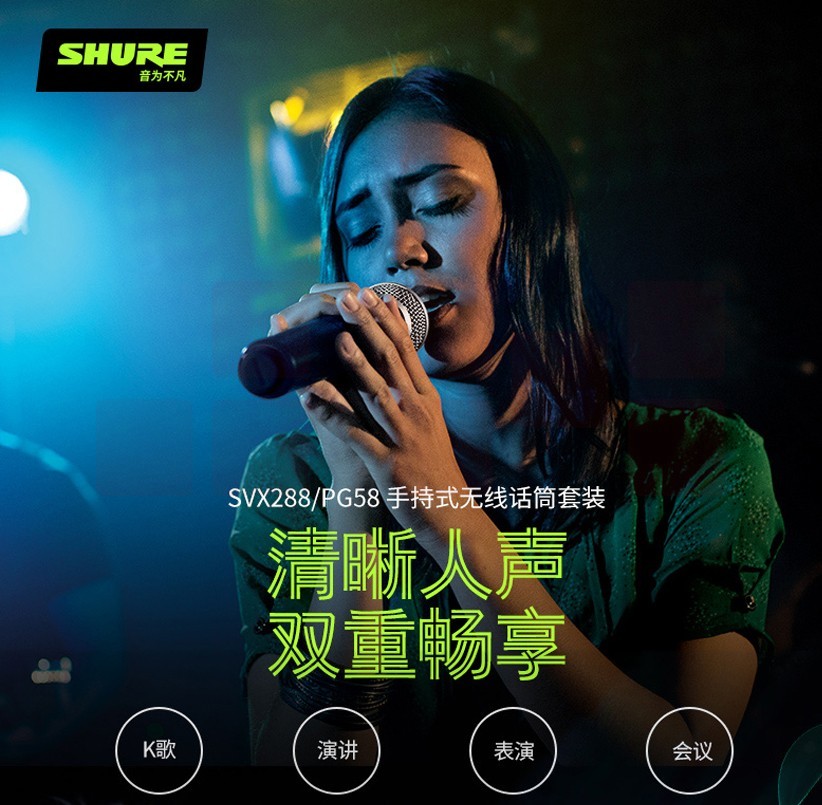 舒尔(shure) SVX288/PG58 一拖二无线话筒
