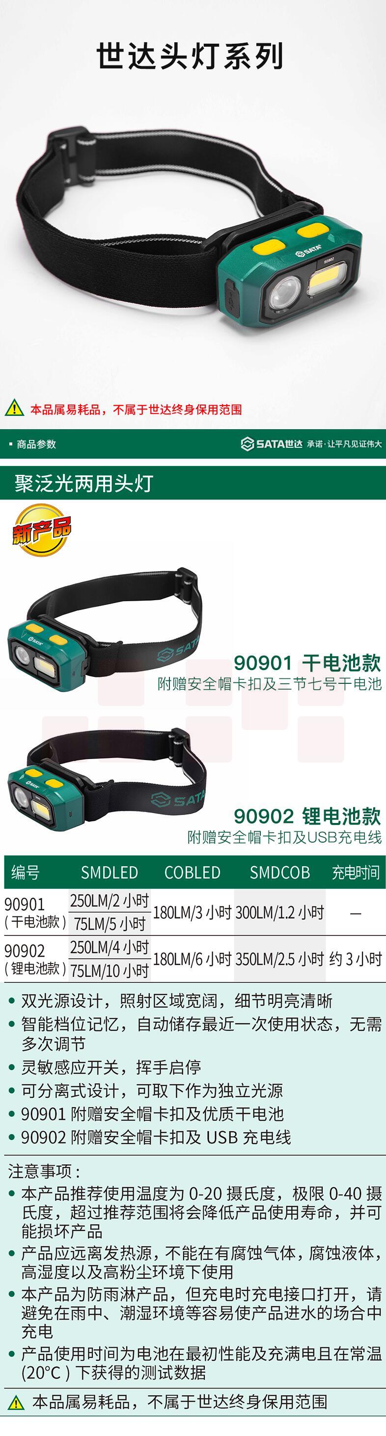 世达感应头灯90902锂电池聚泛光两用75LM/10小时自动存储灵敏感应智能记忆