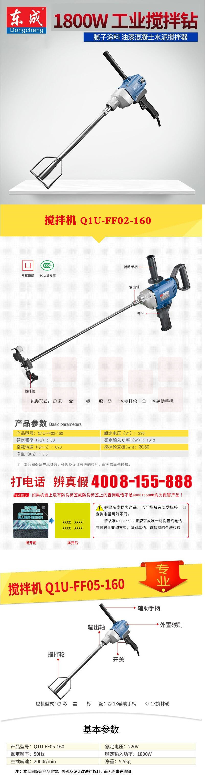 东成 QIU-FF05-160 搅拌机腻子涂料油漆混凝土水泥搅拌器(1800W)