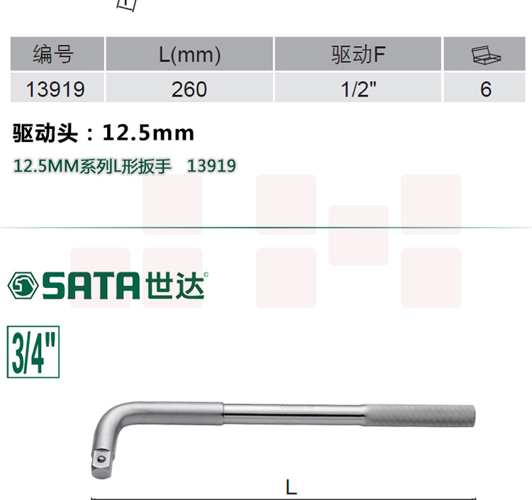 世达(SATA)12.5MM系列L形扳手10" 13919