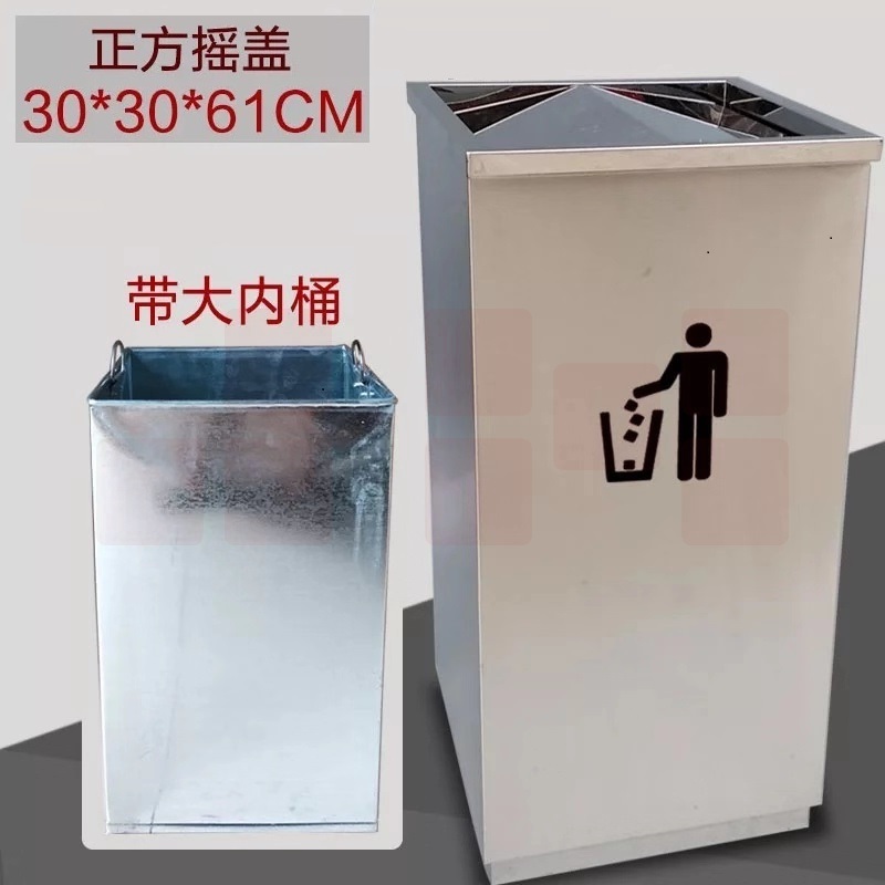正方不锈钢垃圾桶 立式摇盖垃圾桶 大号尺寸30*30*61cm