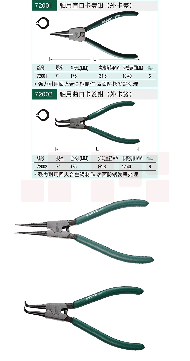世达(SATA)轴用直口卡簧钳7"货号 72001