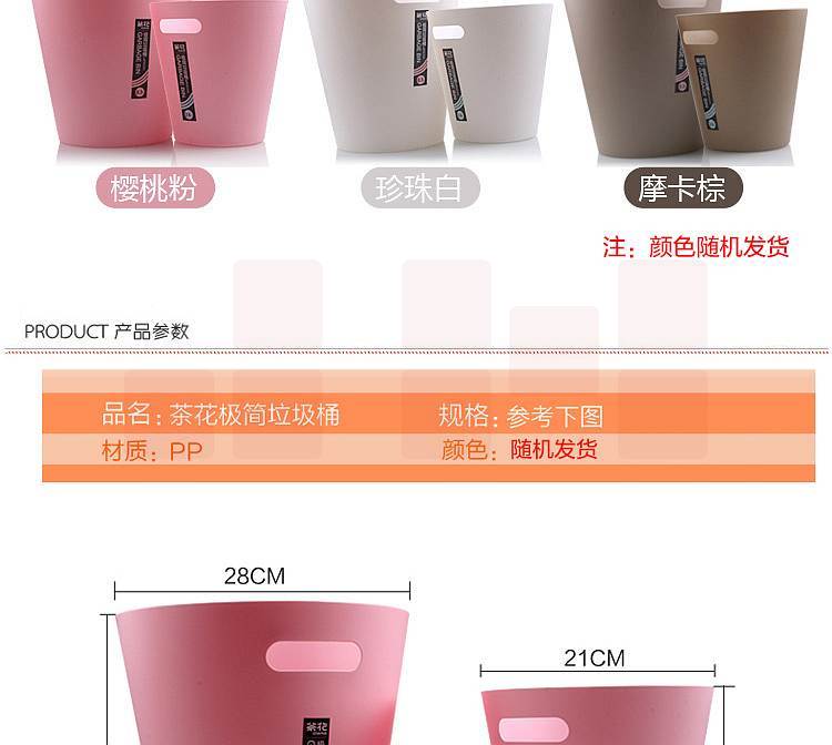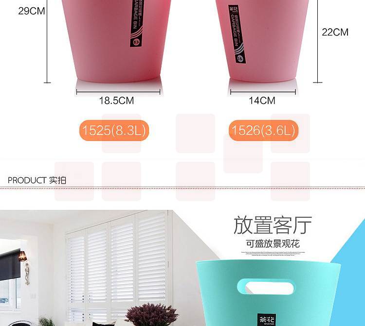 描述:茶花1525极简家居收纳储物桶垃圾桶8.3L\28*29*18.5cm(个)