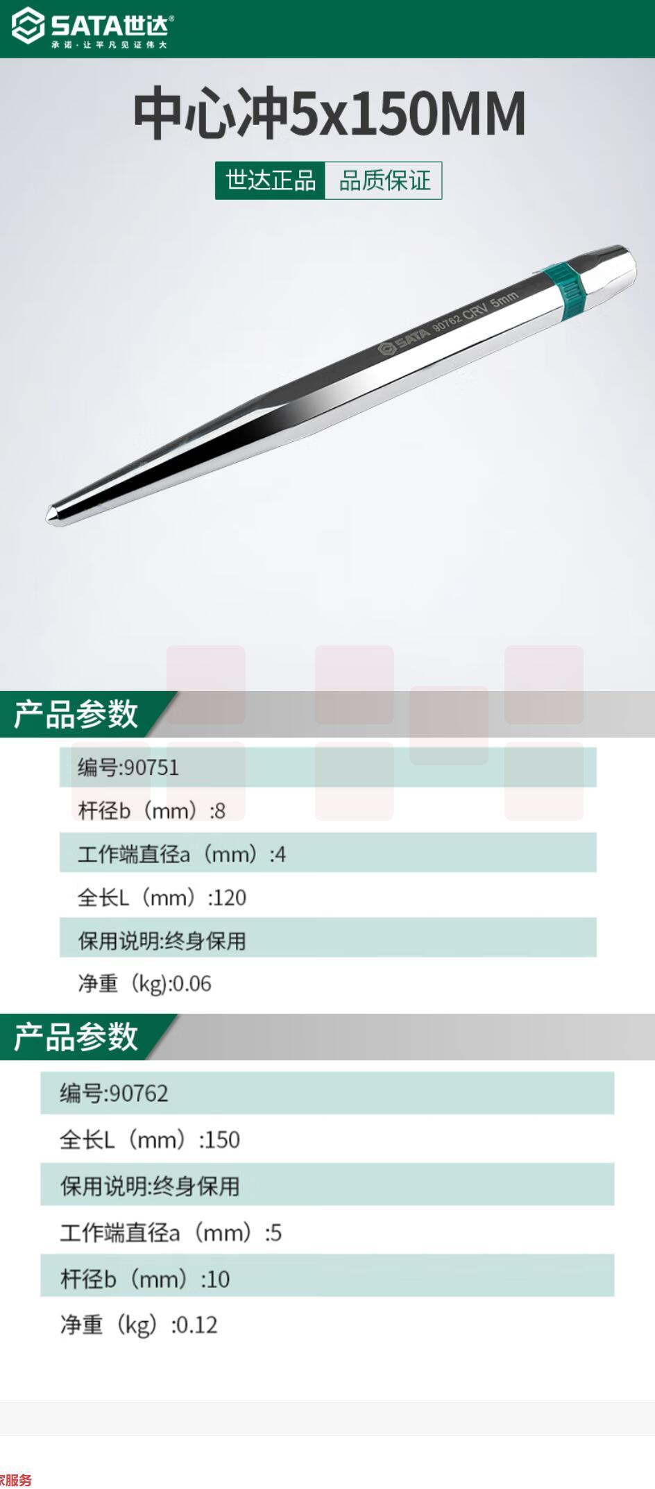 世达 90751中心冲子4x120mm打孔冲定位冲