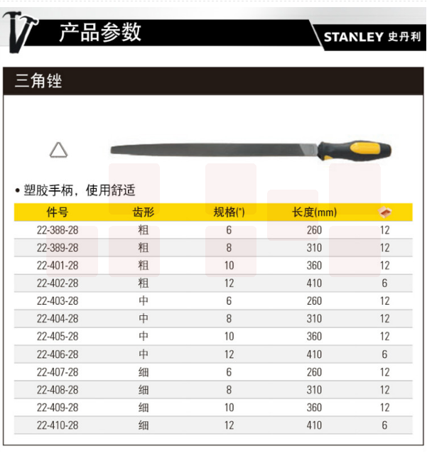 史丹利(Stanley)三角锉粗尺三角锉22-388-28/22-389-28/22-401-28/22-402-28