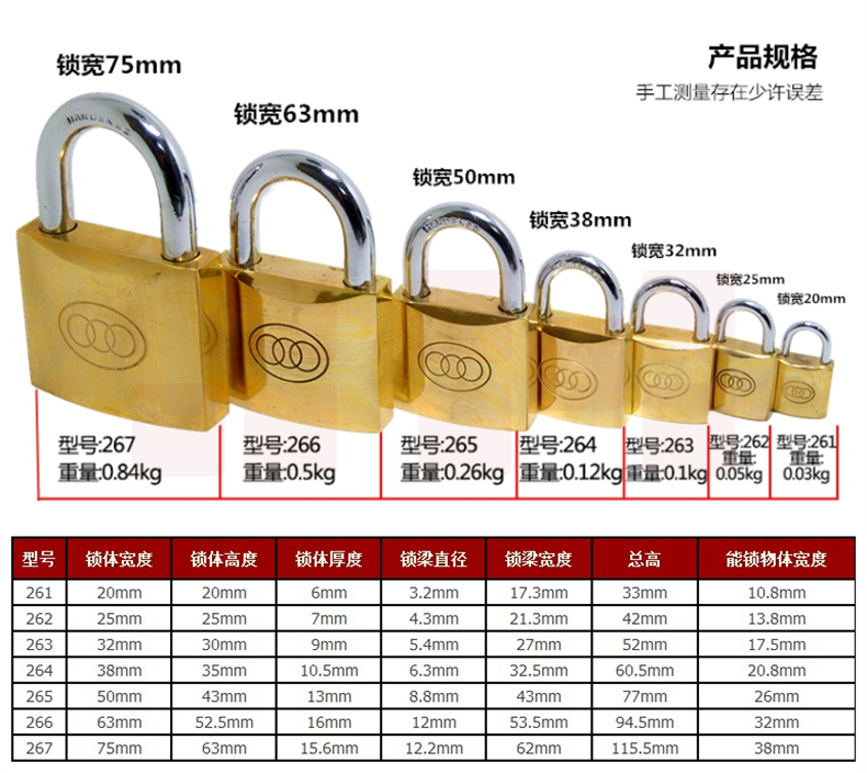 三环 铜挂锁 63mm 266 6/把盒 单位:把