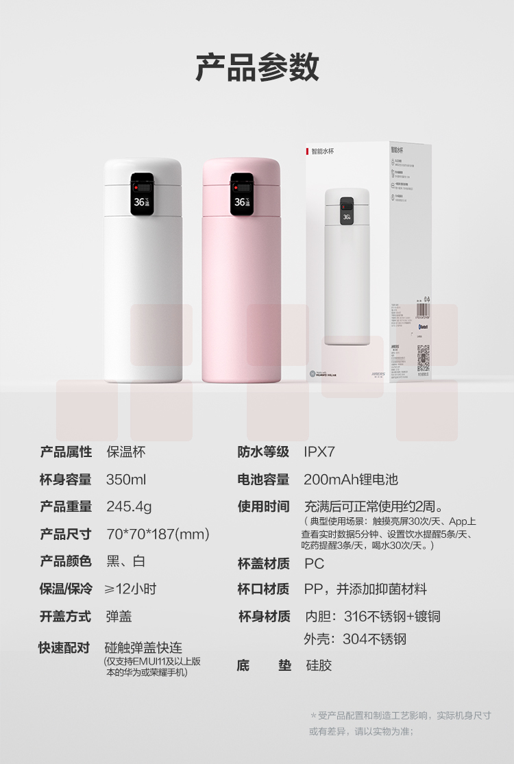 华为智选 哈尔斯智能保温杯350ML 男女家用水杯茶杯杯子316不锈钢 粉色