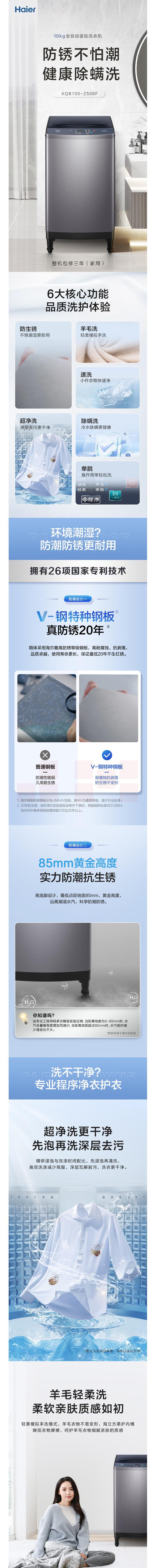 海尔 XQB100-Z508F 家用10kg全自动波轮洗衣机 货号:JC