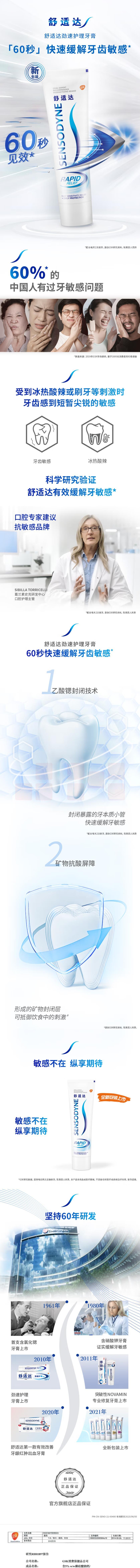 舒适达 劲速护理抗敏感牙膏 抗敏含氟180g
