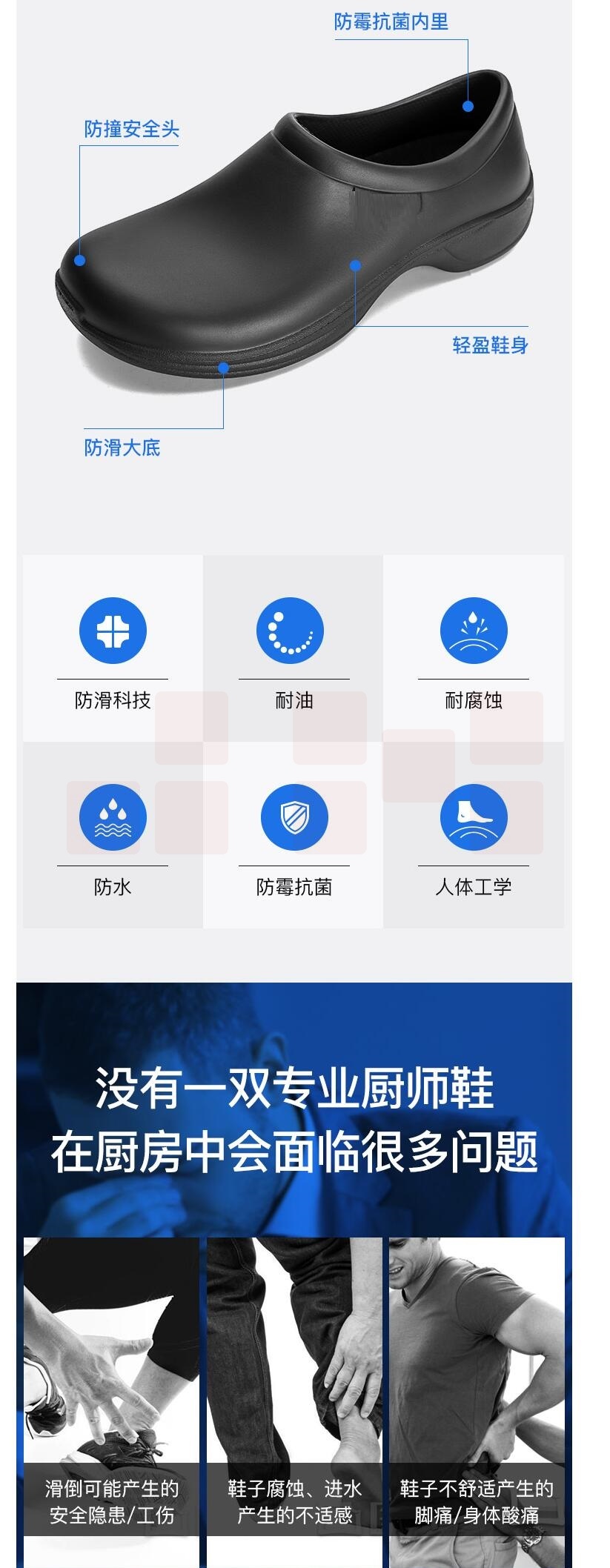 厨师鞋 厨房防滑鞋防水防油工作鞋 货号:JC