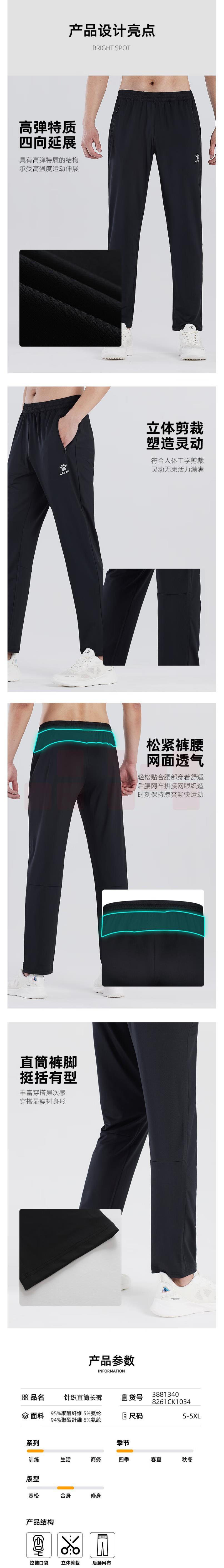 卡尔美 春秋运动裤男跑步训练长裤舒适透气针织直筒裤子3881340
