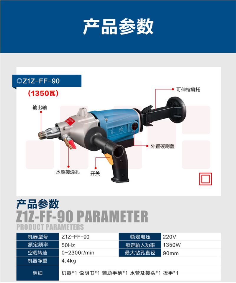东成 金刚石钻孔机钻过墙眼ZIZ-FF-90