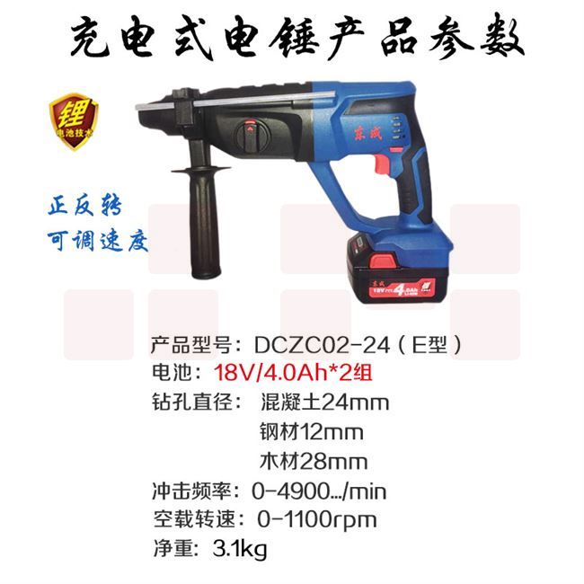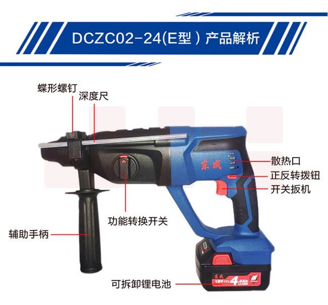东成 DCZC02-24E 18V双电 充电式无刷电锤冲击钻混凝土大功率多功能电钻