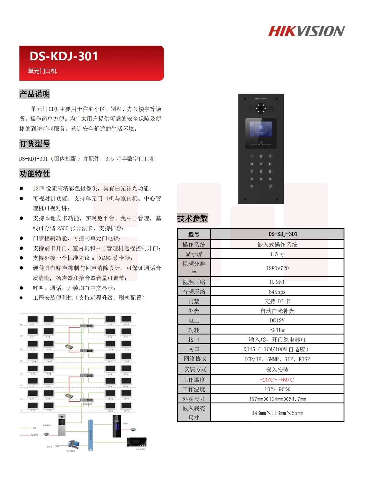 可视门铃 DS-KDJ-301 智能人脸识别考勤门禁一体机 (不含安装)货号:JC