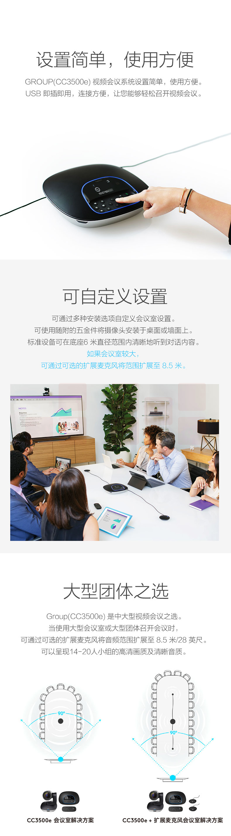 罗技(Logitech) 视频高清广角系统电脑摄像头高端商务电话会议 CC3500e 音视频会议摄像头