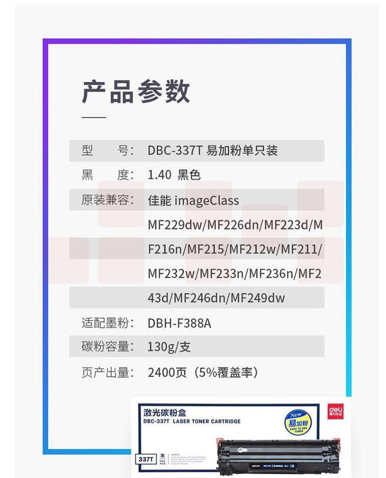 得力(deli)DBC-337T 黑色 CRG-337硒鼓 (适用佳能 MF243d 246dn 232w 249dw MF229dw/226dn/216n/223d/212w)
