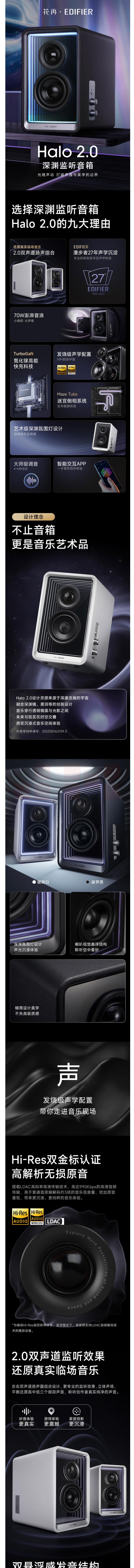 漫步者(EDIFIER)Halo 2.0 深渊监听音箱 蓝牙电脑音响 桌面音响