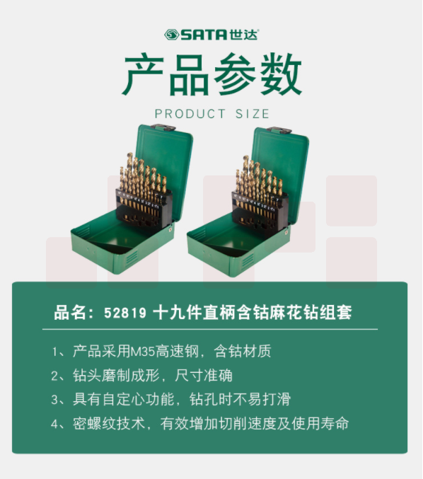 世达(SATA)19件套直柄含钴麻花钻 货号52819