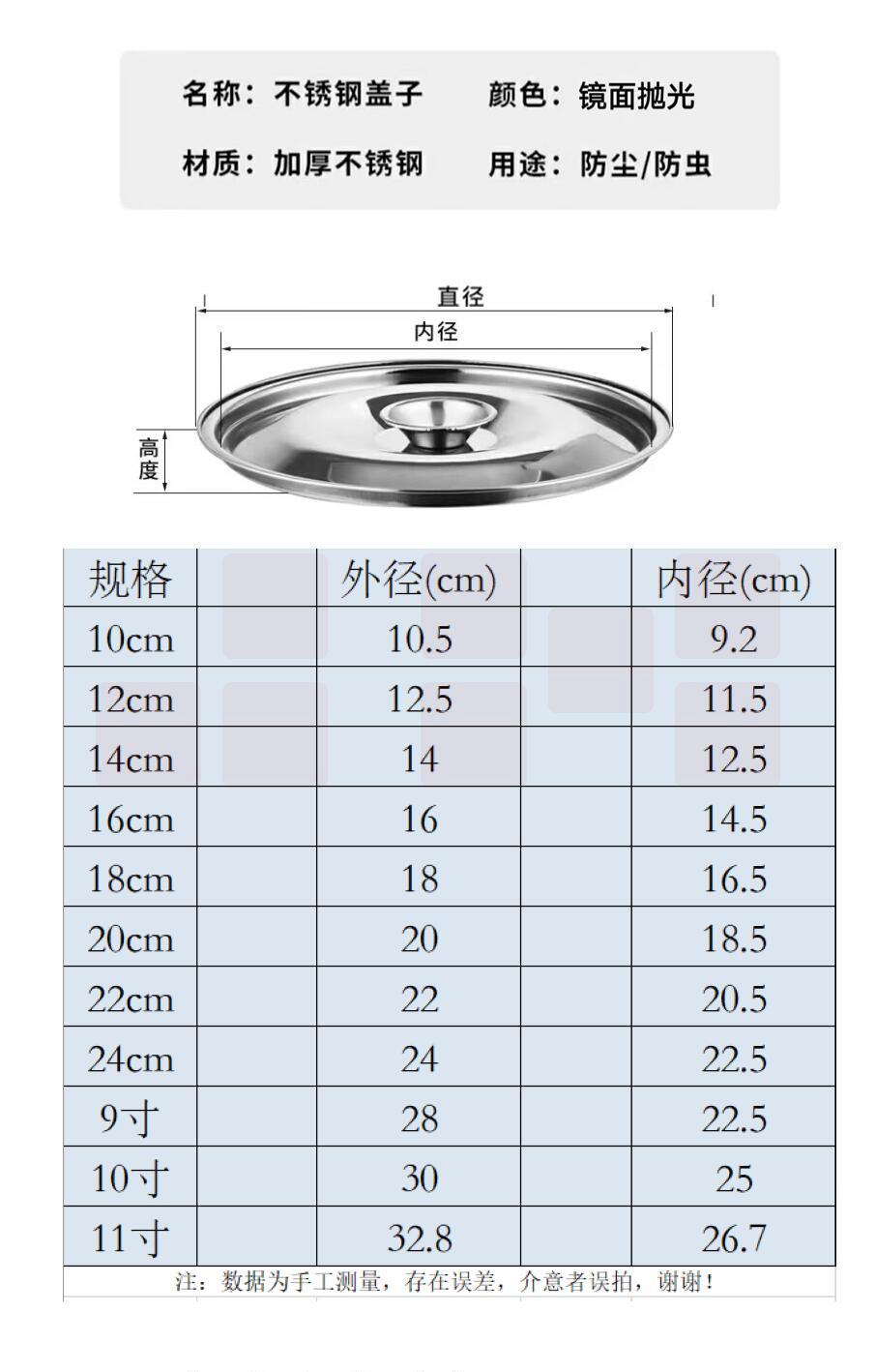 不锈钢圆形盖子 盆盖 30cm盖子 适配直径30cm不锈钢盆使用 货号:TXH