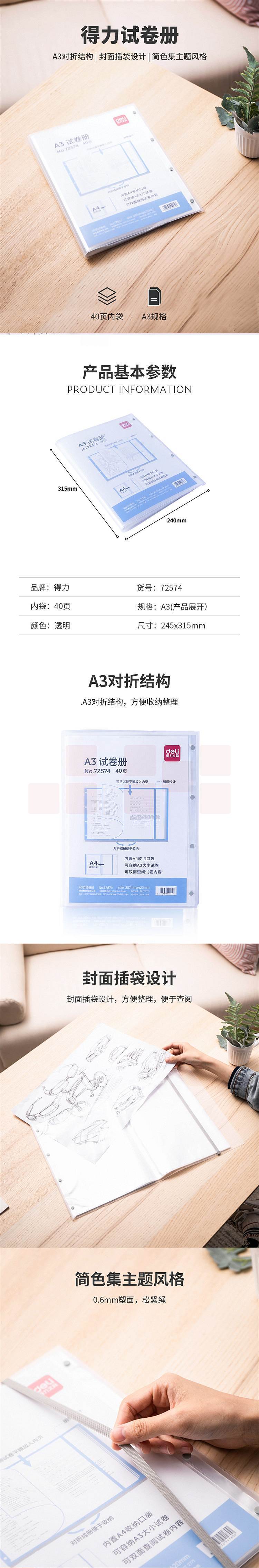 得力72574 40页A3资料册试卷册(单位:个)透明