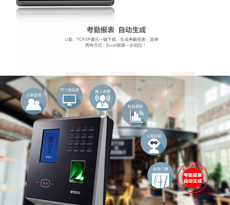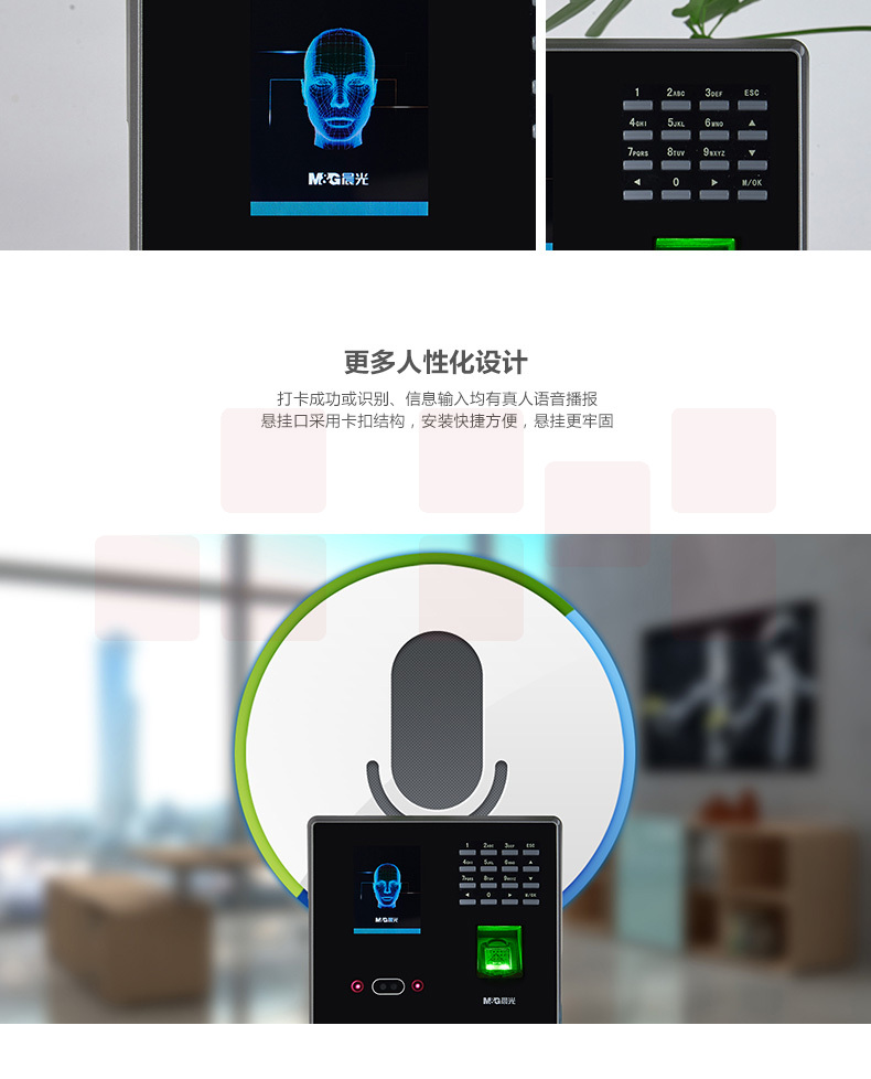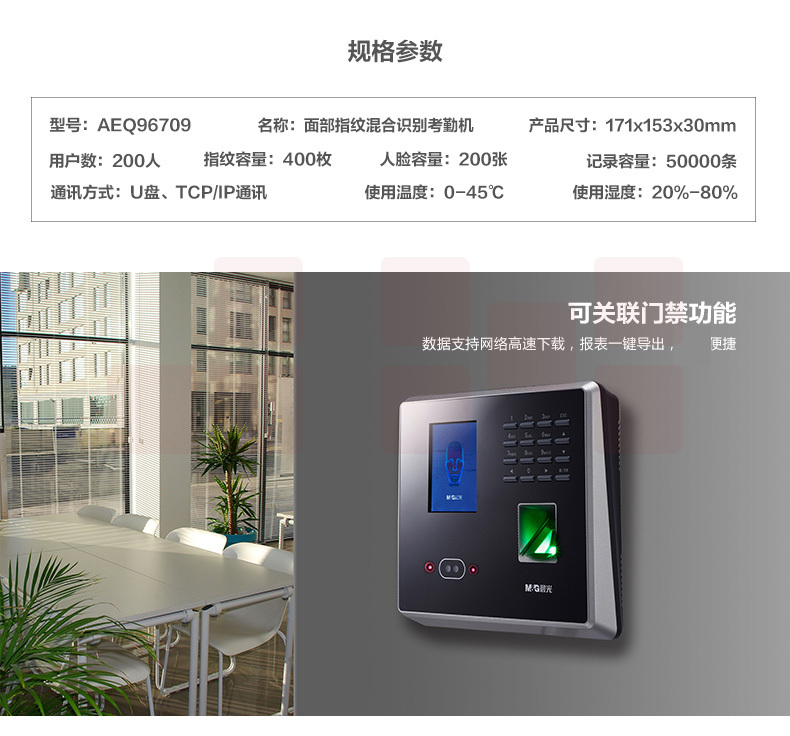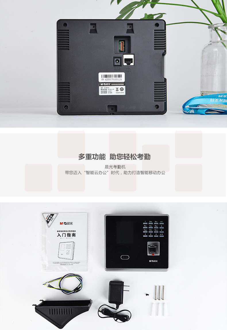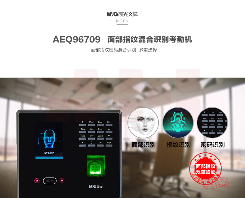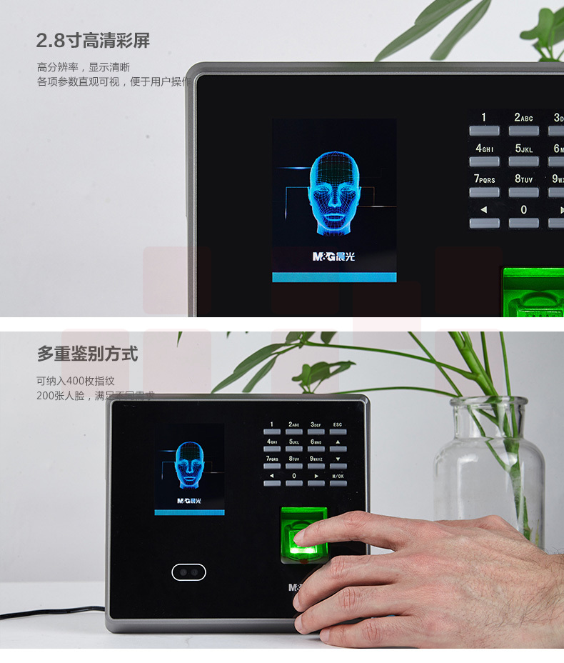 晨光(M&G)面部指纹混合识别考勤机 指纹手指签到 考勤打卡机AEQ96709