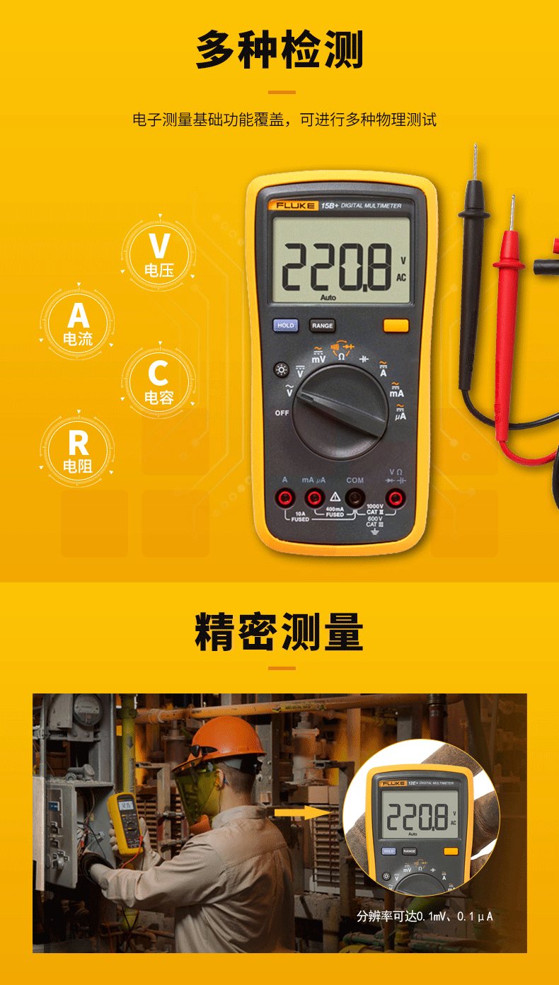 福禄克数字万用表 15B+