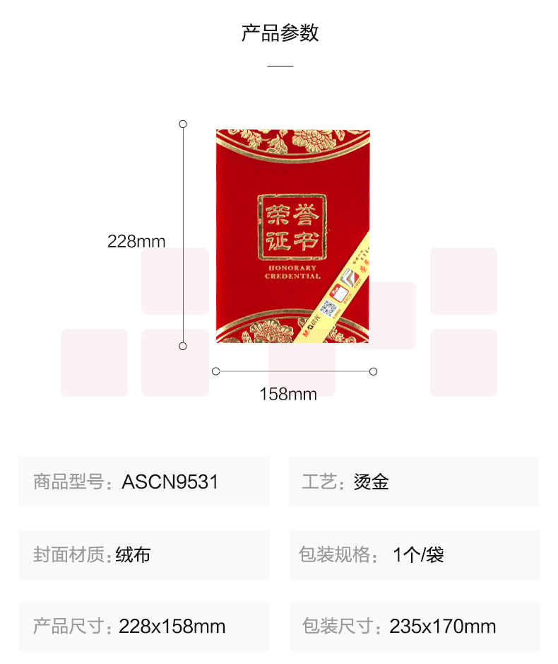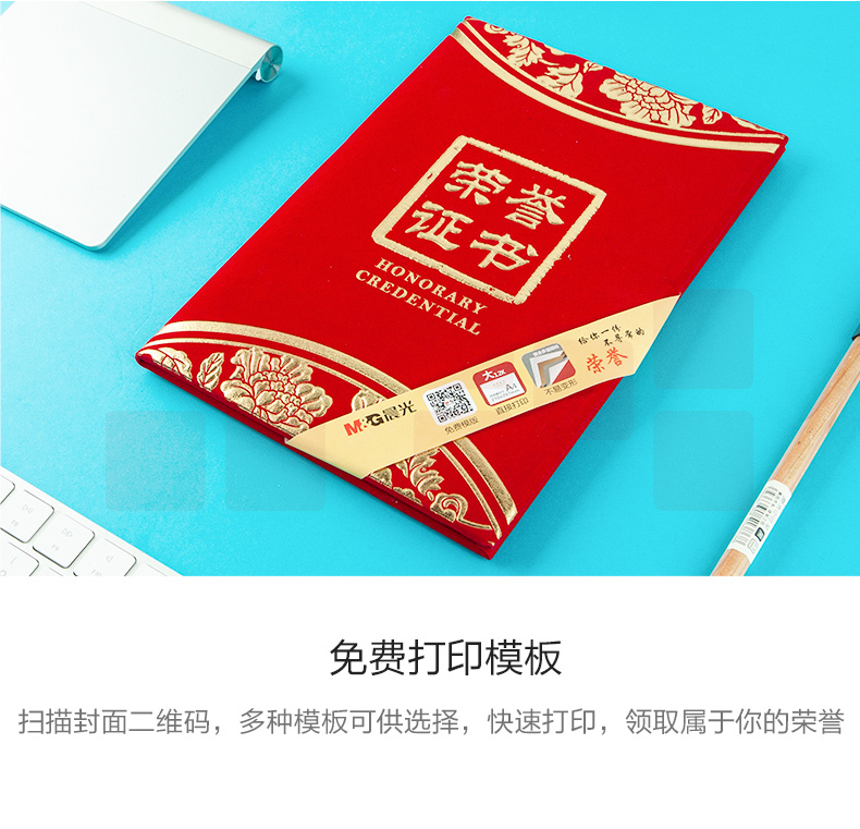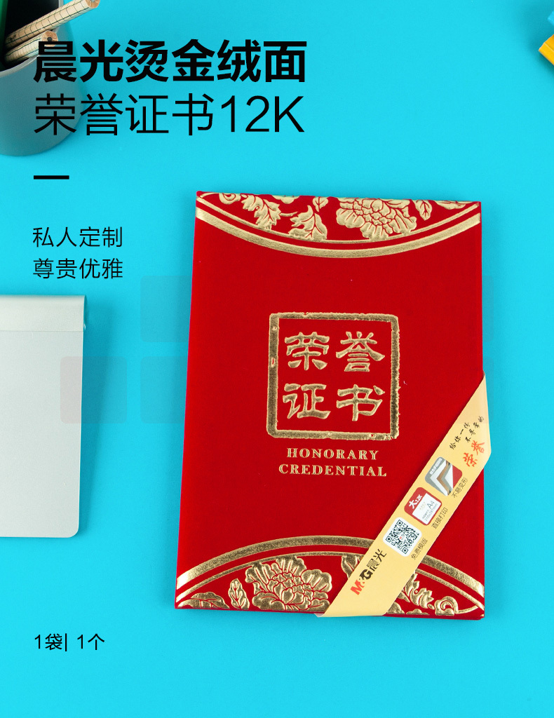 晨光12K烫金绒面荣誉证书ASCN9531