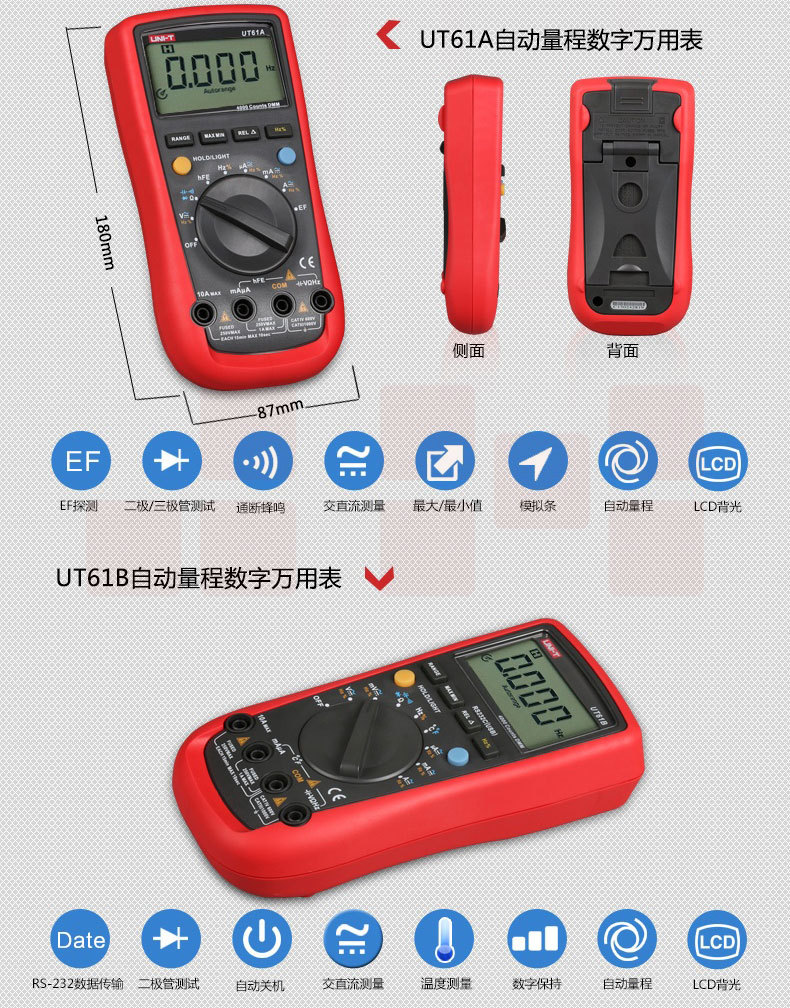 优利德(UNI-T) 自动量程数字万用表 UT61C