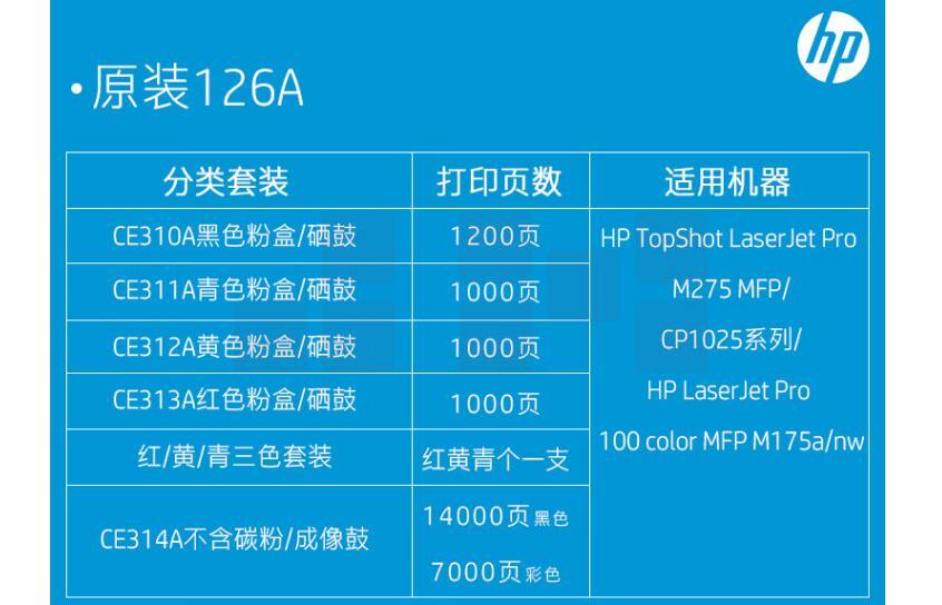 惠普 CE310A(126A) 适用于(HP Color LaserJet Pro CP1025 )