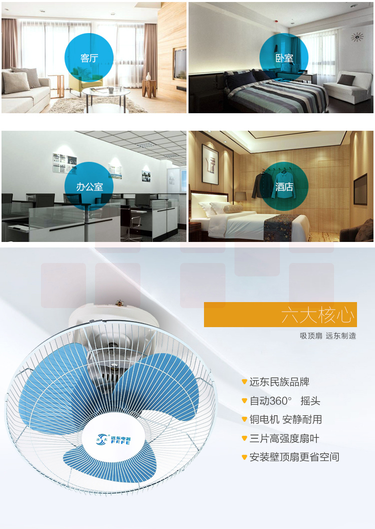 远东 FD-40 楼顶扇 16寸吸顶摇头扇 宿舍楼顶扇