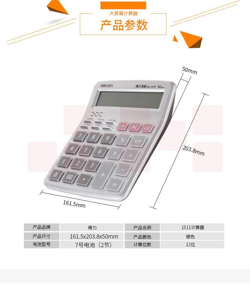 得力1511 计算器语音水晶大按键计算机 12位数大屏幕