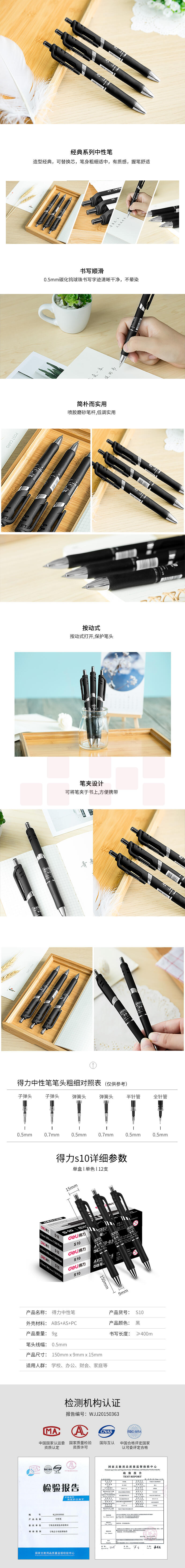 得力 中性笔签字笔 0.5mm子弹头磨砂杆12支/盒S10