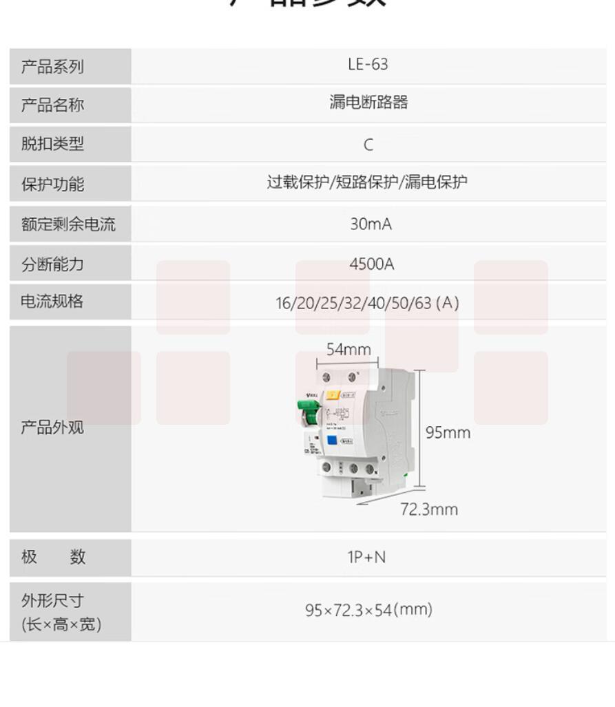 公牛 LE-63/16A-1PN 漏电保护断路器 双进双出16A带漏保 电源空开