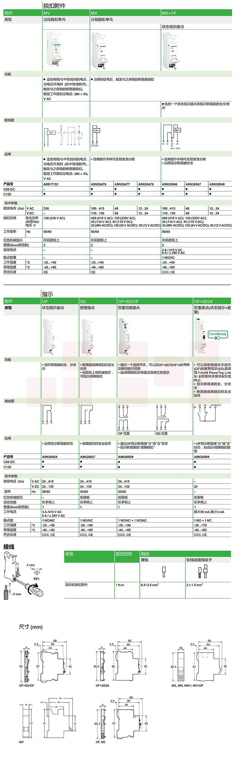 施耐德 C65N+OF辅助触点+MX OF分励脱扣