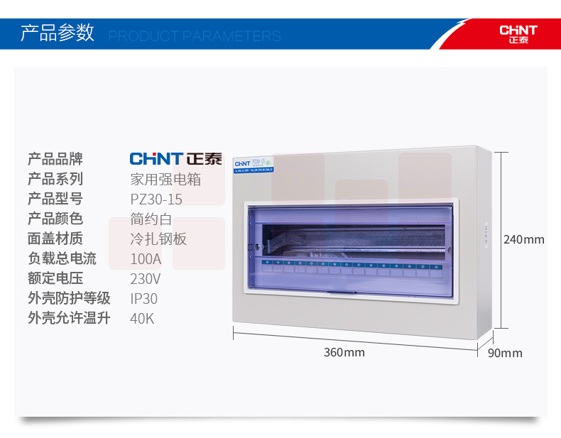 正泰(CHNT)PZ30 -15 家用照明箱 PZ30 明装 空开箱 断路器布线箱 15回路