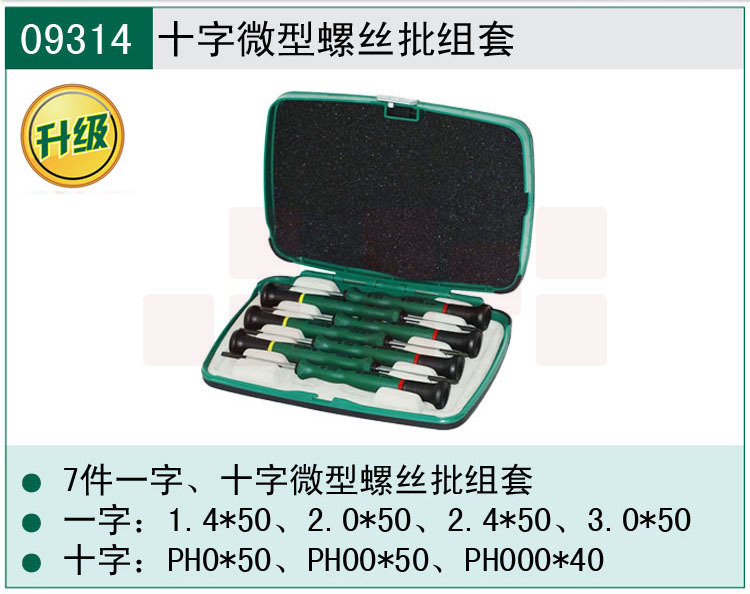 世达(SATA)7件一字、十字微型螺丝批组套货号09314