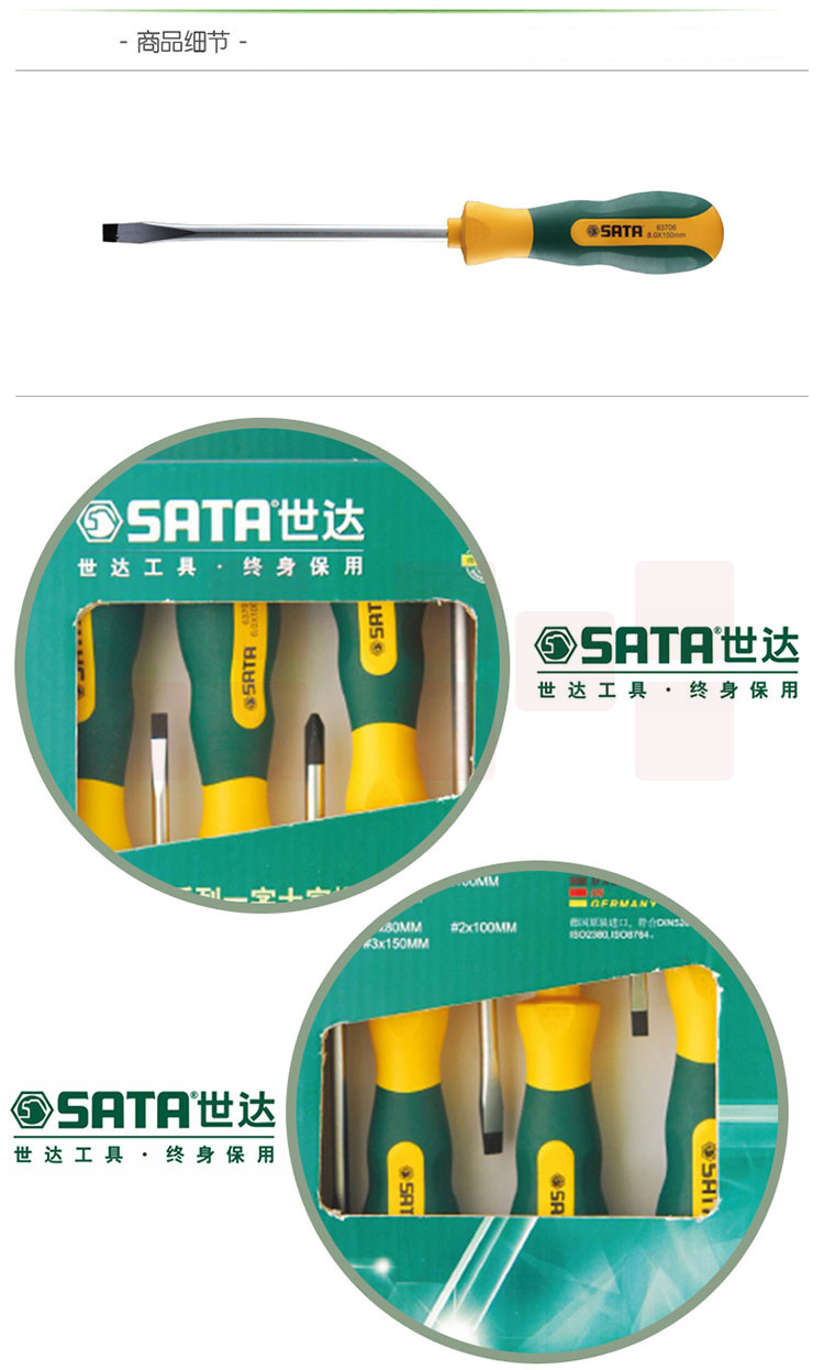 世达(SATA)6件G系列一字、十字螺丝批组套货号09335