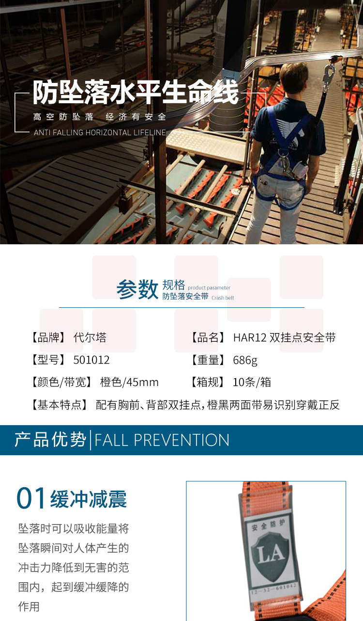 代尔塔 501012 双挂点安全带 高空坠落户外攀爬救援安全带