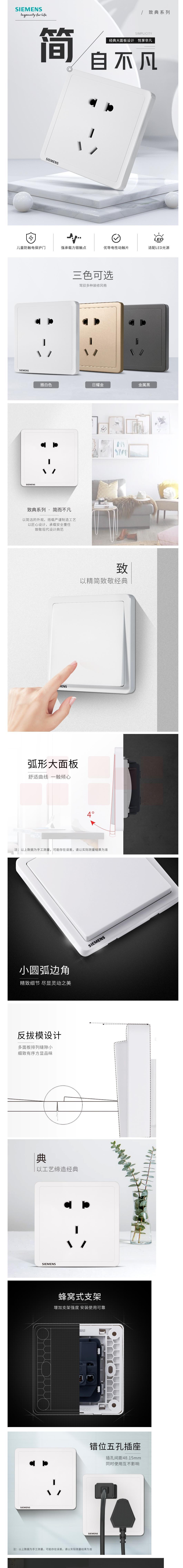 西门子(SIEMENS)开关面板 墙壁大面板开关 致典白色 一开单控开关 货号:ZF
