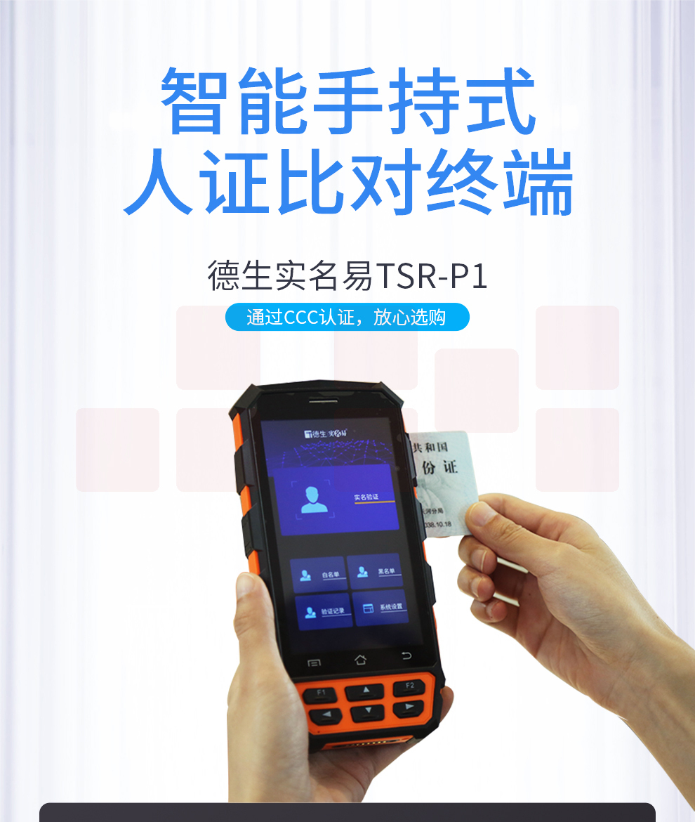德生实名易 TSR-P1 手持式人证核验一体机 身份证+人脸 保修一年