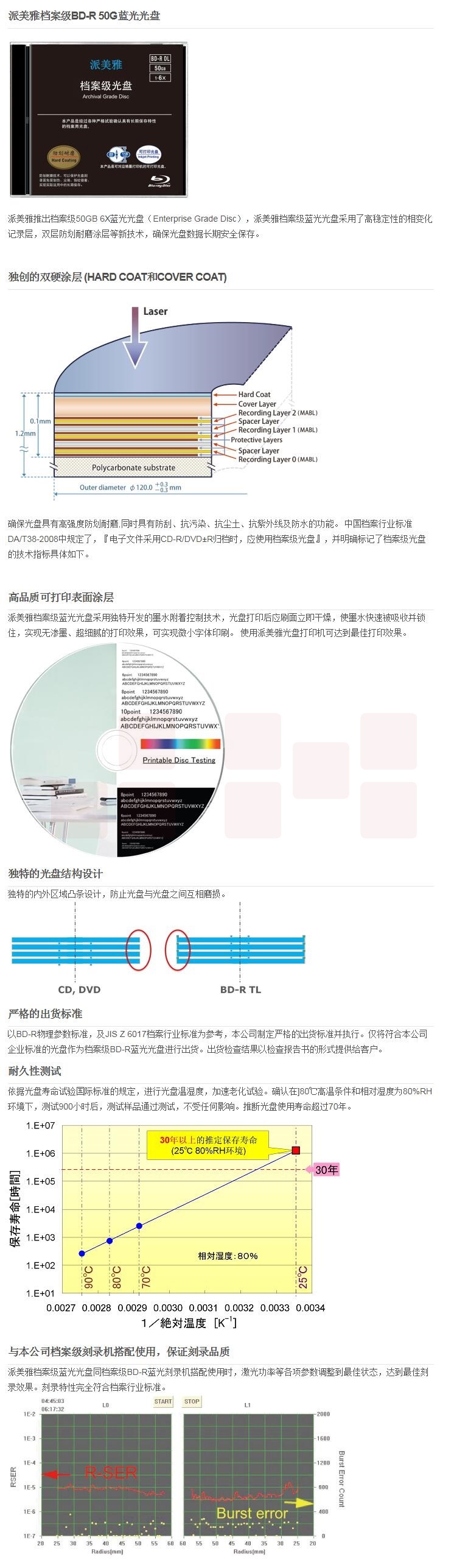 派美雅 档案级 BD-R 50G 蓝光光盘 货号:WY
